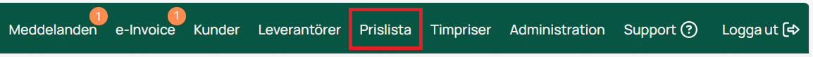 All articles that you can charge for and that do not appear on supplier invoices should be included in your price lists. In the upper part, you see the price lists that are uploaded, and in the lower part, you see the articles in the selected price list.