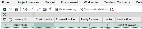 A credit invoice corresponding to the entire amount of the debit invoice is created, and the Credit Invoice column is automatically marked (cannot be manually specified).