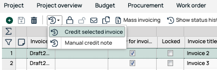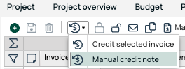 Manual credit invoices are created through the "Manual credit invoice" option.