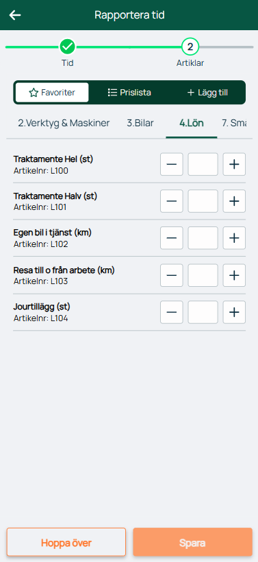 Now you will reach the part where, if expected of you, you should report the machines and materials you used during the day, as well as any salary supplements you are entitled to.