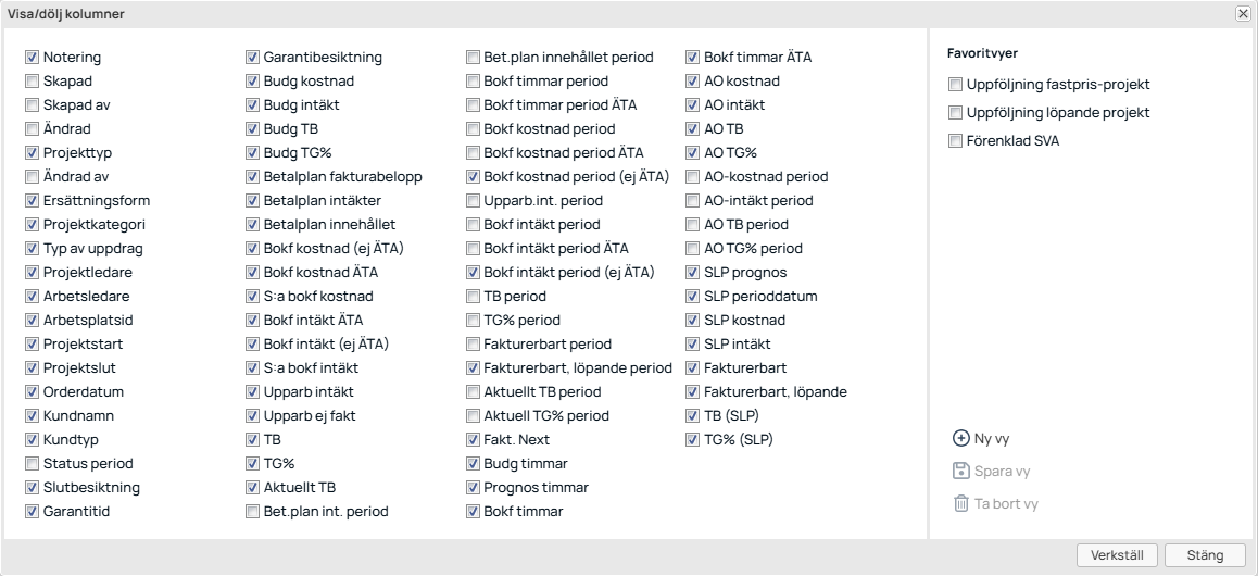 This article describes how to select what columns to show or hide in a grid and then how you save your column selections in Next Project, which we call Favorite Views.