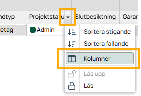 Hover over any column header and click the down arrow that appears, then select 'Columns'.