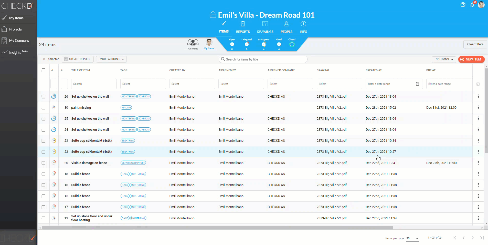 Du har muligheten til å registrere en 'Due date' (frist) på 'Items' (oppgaver) du lager i løsningen. Dette gir deg muligheten til å filtrere på oppgaver som skal være utført innen en bestemt tid. Pr. i dag er det ingen varsling på når en oppgave har passert den bestemte fristen/dato.