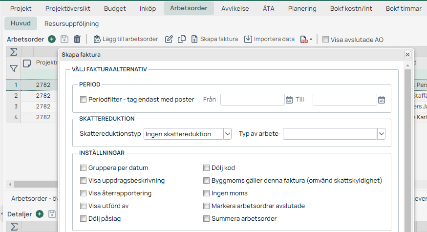 Marker den eller de arbeidsordrene du ønsker å fakturere.