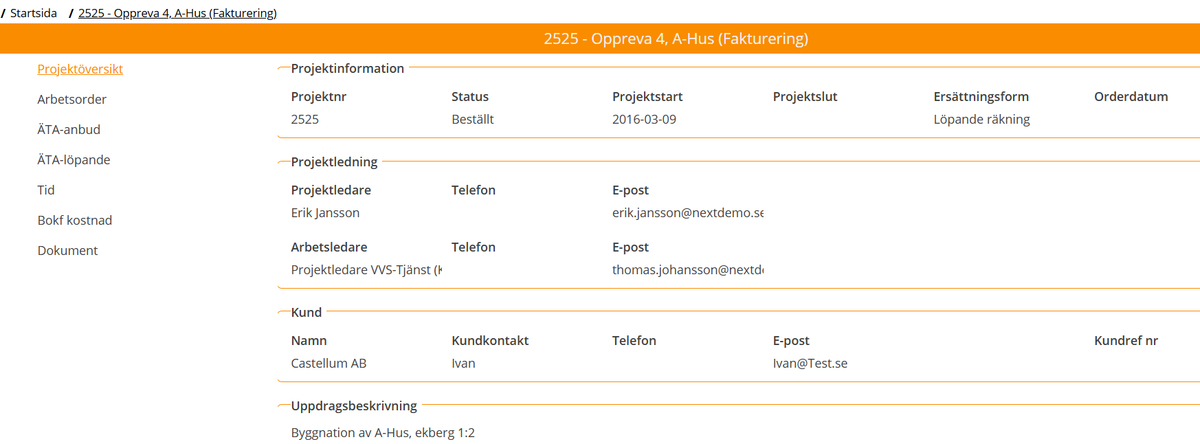 AO – Visar arbetsordrar i projektet