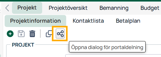 Klicka på Portaldelningsknappen på Projekt-fliken (du kan också högerklicka på projektet och dela den vägen).