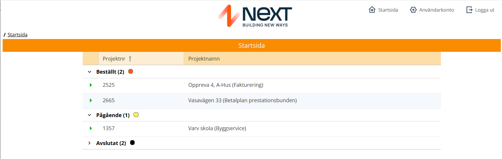 I Next Project finns en portal-funktion Next Portal för att låta beställare, UE och personal ta del av projekten. I Portalen kan du dela dokument, Arbetsorder, ÄTOr och bokförda timmar. Om ni saknar funktionen och önskar beställa den, klicka här.