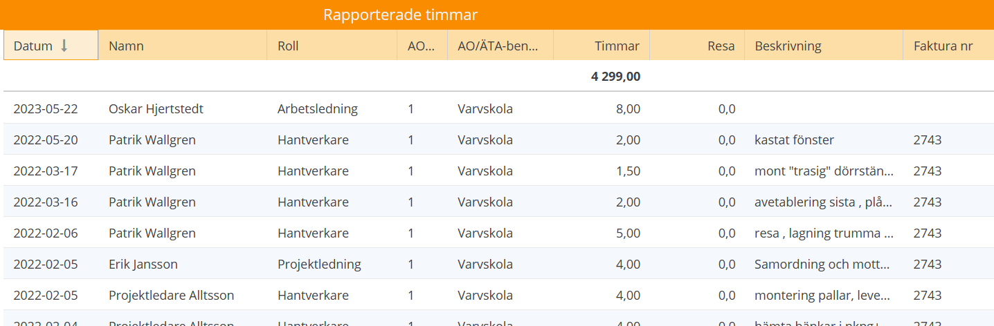 Tid – bokförda timmar på projektet