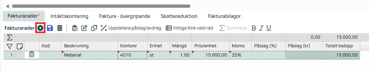 Lägg till en ny rad i fakturan |