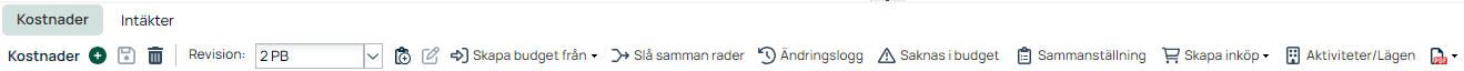 I verktygsfältet under budget-fliken finns ett antal knappar, se bild ovan: