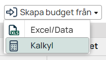 För att starta importen klicka på ´skapa budget från´ välj sedan ´Kalkyl´
