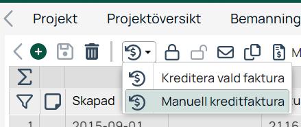Manuella kreditfakturor skapas genom alternativet Manuell kreditfaktura.
