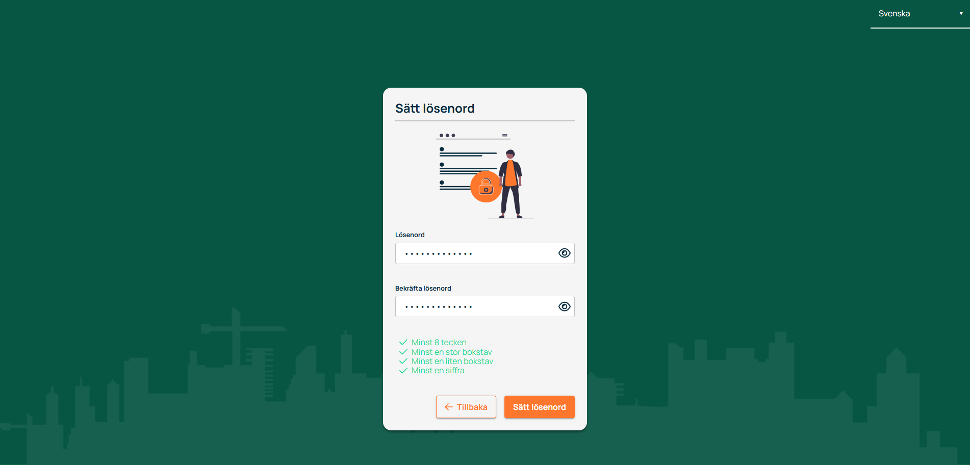 Användaren sätter sitt eget valda lösenord. Kriterierna enligt bilden nedan.