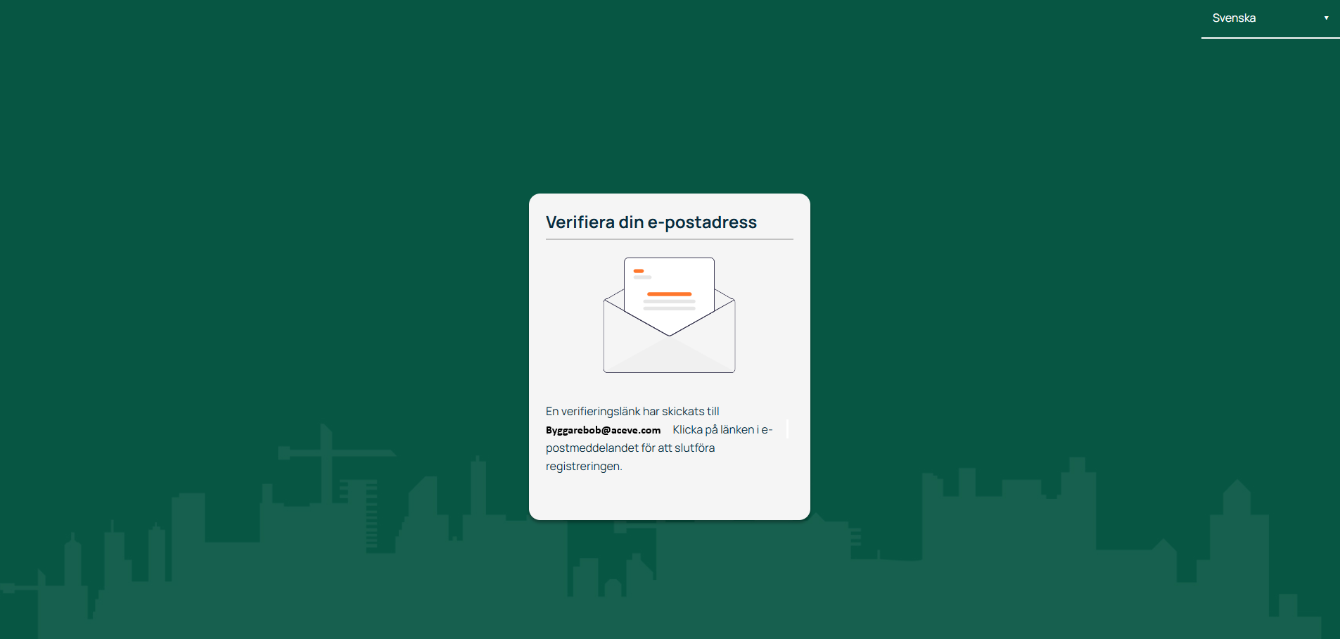 Användare får information om att ett verifierings-mail är skickat till den angivna E-postadressen.