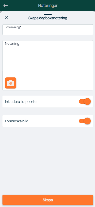 - Fyll i beskrivning (en rubrik), skriv en notering och lägg till eventuella bilder.