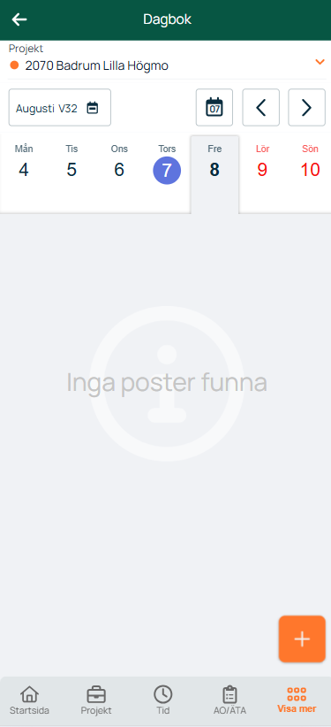 - Välj projekt som du ska skriva Dagbok på.