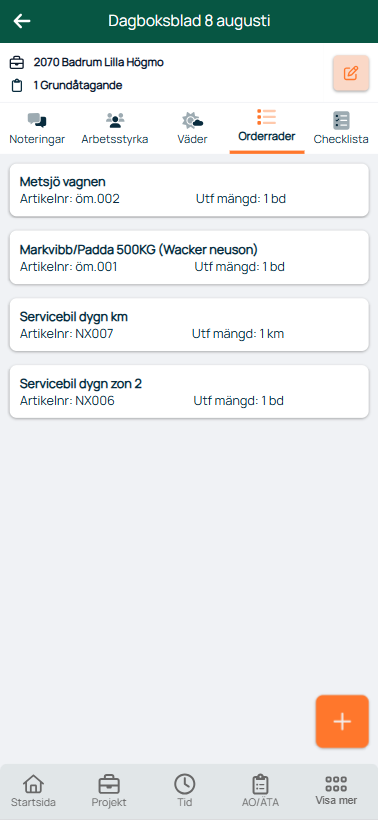 - Byggdag sätts automatiskt. Behöver man ändra byggdag, görs det från redigeringsvyn, efter att dagboksbladet har skapats.