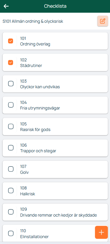 - Klicka på det orangea pluset för att lägga till en checklistepunkt.