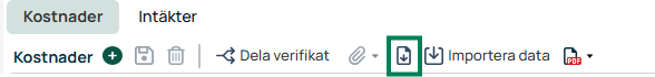 - Ny knapp i Bokförda kostnader för att ladda ner en PDF-fil som innehåller alla markerade leverantörsfakturor. Markera de rader, ctrl+klick, som har PDF-filer som du vill baka ihop till en PDF och klicka sedan på ikonen för att ladda ned leverantörsfakturabilder, se nedan. OBS! Uppmärksammades efter releasen att endast användare med full rättighet till Bokf kost/int kan använda funktionen. Rättning av detta släpps i nästa release 22 september. Då kan även de som har läsrättighet skriva ut en PDF som inkluderar fler leverantörsfakturor.
