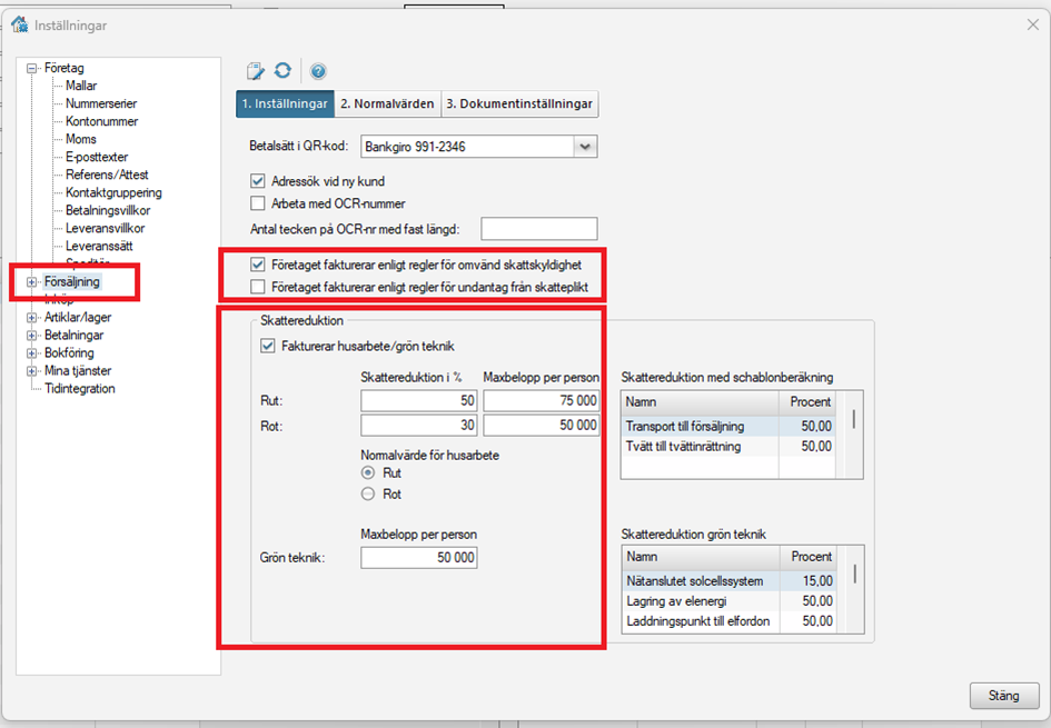1. Gå till Arkiv - Inställningar - Företagsinställningar – Försäljning och kontrollera nedan inställningar.