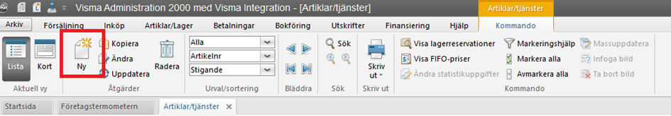 För att integrationen av kundfaktura ska fungera mellan Next Project och Visma Administration behöver nedan inställningar och artiklar sättas upp i Visma Administration.